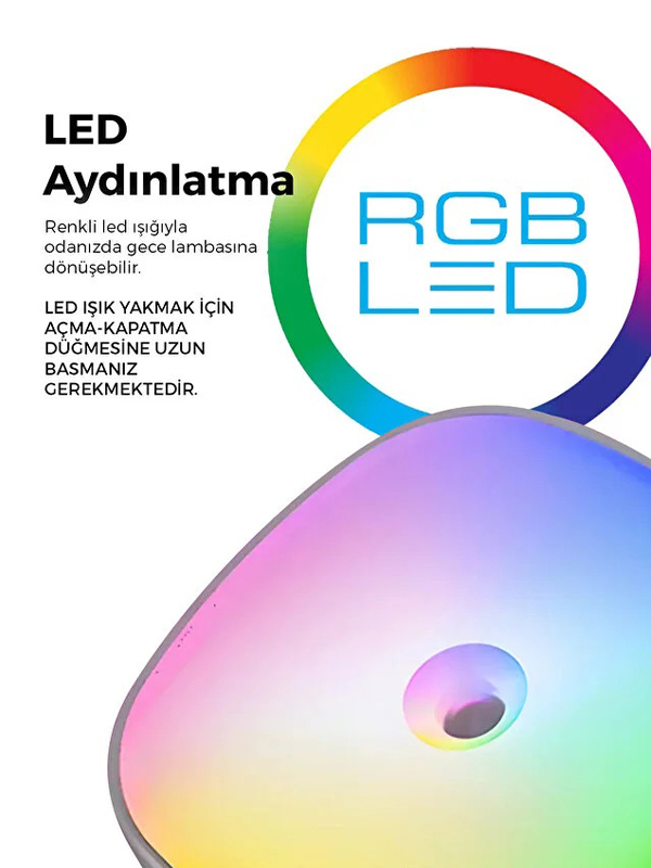• Renkli Atmosfer (RGB Led): Otomatik değişen yumuşak RGB ışıkları ile gece lambası veya ambiyans aydınlatması olarak kullanılabilir.