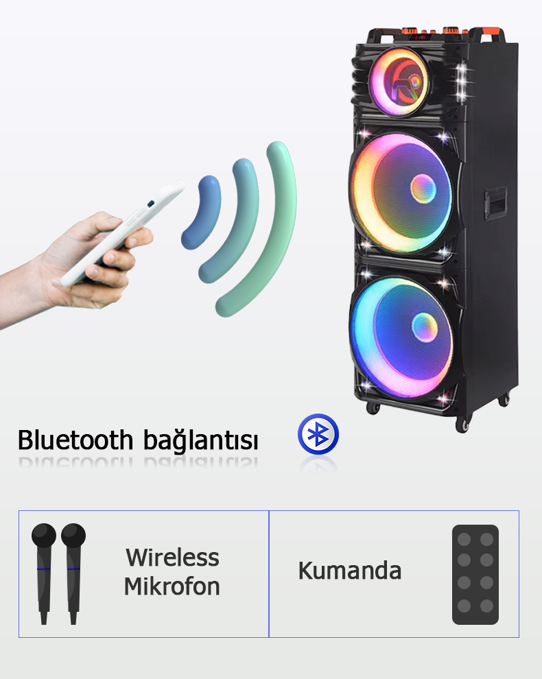 Müzik ve eğlence tutkunları için tasarlanan Dev Boy Karaoke Bluetooth Hoparlör, üstün ses performansı, çok yönlü bağlantı seçenekleri ve etkileyici ışık efektleriyle her ortamda büyüleyici bir atmosfer yaratır. İster evde ailecek karaoke yapın, ister açık hava etkinliklerinde müziğin ritmine kapılın; bu hoparlör, sizi ve sevdiklerinizi müziğin büyüsüne davet ediyor.