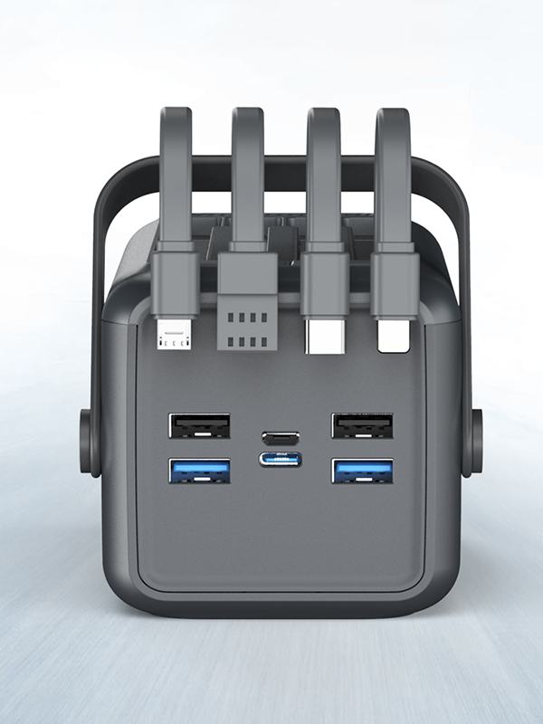 Ayrıca dahili USB, Type-C, Micro USB ve Lightning kabloları, ekstra kablo taşıma ihtiyacını tamamen ortadan kaldırır.