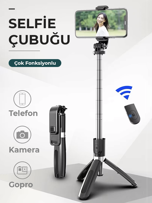 Mükemmel selfie’ler çekmek artık çok daha kolay! Bluetooth Bağlantılı Ayarlanabilir Selfie Çubuğu, şık tasarımı ve işlevsel özellikleri ile her anınızı kusursuz karelere dönüştürmenizi sağlar. Hem hafif hem de dayanıklı yapısı sayesinde, istediğiniz her yerde profesyonel çekimler yapabilirsiniz.