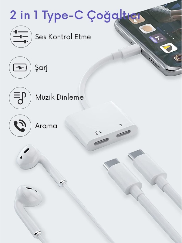 Çift Type-C Dönüştürücü | Şarj + Kulaklık Kullanımı | Hi-Fi Ses Destekli | Tak & Çalıştır